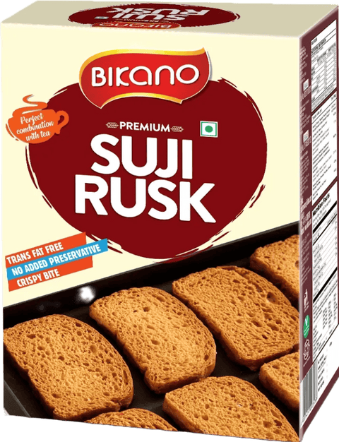 Bikano Suji Rusk is a traditional Indian baked snack made with semolina, offering a crispy and satisfying texture. Perfect for tea time or as a light accompaniment to your favorite beverages, this classic treat delivers authentic flavor in every bite. Enjoy the wholesome taste of a time-honored recipe that's been enjoyed across generations. Ideal for snacking throughout the day or sharing with family and friends.