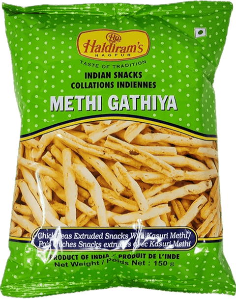 Haldirams Methi Gathiya is a savory Indian snack crafted with fenugreek leaves and gram flour, delivering a distinctive herbal flavor with a satisfying crunch. This traditional treat combines authentic spices and quality ingredients for an authentic taste experience. Perfect for snacking on the go, sharing with family, or enjoying alongside tea. Haldirams brings you a classic favorite that captures the essence of Indian snacking traditions.