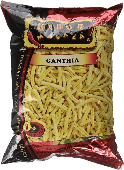 Mirch Masala Ganthia is a traditional savory snack that brings authentic Indian flavors to your table. These crispy, golden pieces are seasoned with a blend of aromatic spices including chili and traditional masala, delivering bold taste in every bite. Perfect for snacking on their own or serving at gatherings, this classic treat offers the comfort of homemade Indian cuisine. Enjoy the satisfying crunch and rich spice profile that makes Ganthia a beloved favorite across generations.