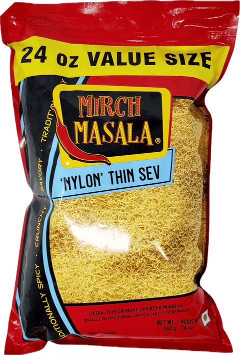 Mirch Masala Nylon Thin Sev is a delicate, crispy snack made from gram flour and traditional spices. These thin, golden strands offer a satisfying crunch with every bite, delivering authentic Indian flavors in a convenient ready-to-eat format. Perfect for snacking on their own or enjoying with tea and beverages. A classic treat that brings the taste of traditional Indian cuisine to your table.