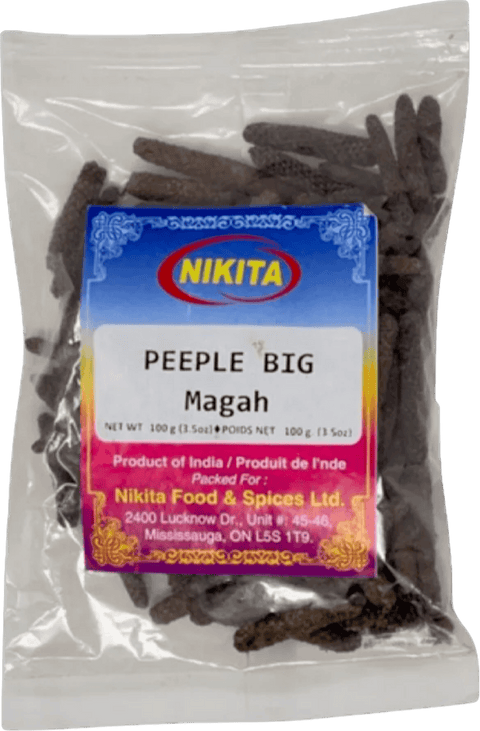 Magha Peeple (Magh Pipal) is a dried spice featuring the fruit spikes of Piper longum, traditionally known as Indian Long Pepper. This potent ingredient brings authentic warmth and distinctive pungency to your culinary creations. With its rich heritage in traditional spice blends and cooking practices, Magha Peeple adds depth and character to dishes. Perfect for those seeking genuine, high-quality spices to elevate their kitchen pantry with time-honored flavors.