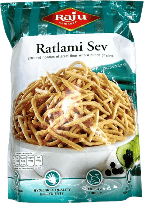 Raju Ratlami Sev is a traditional Indian savory snack crafted with a perfect blend of spices and gram flour. This crispy, thin noodle-like treat delivers authentic flavors with every bite. Ideal for snacking on its own or serving at gatherings, it brings the taste of classic Indian cuisine to your table. A versatile addition to your pantry for whenever you crave something satisfying and flavorful.