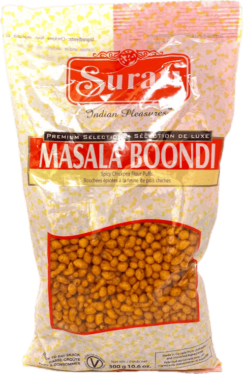 Surati Masala Boondi is a traditional Indian snack featuring tiny, round pearls of gram flour seasoned with aromatic spices. This savory treat offers a satisfying crunch and bold flavor profile that makes it perfect for snacking straight from the package or adding to your favorite trail mix. The distinctive masala blend brings warmth and depth to every bite. Ideal for tea time, parties, or whenever you crave an authentic taste of Indian cuisine.