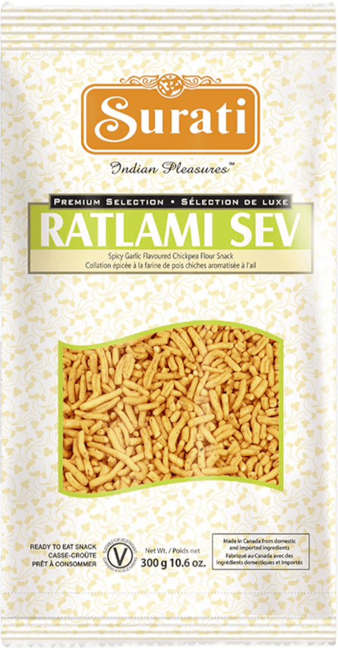 Surati Ratlami Sev is a traditional Indian snack crafted with authentic flavors and a satisfying crunch. This savory treat combines fine gram flour noodles with aromatic spices, delivering the distinctive taste of Ratlam's beloved recipe. Perfect for snacking straight from the package or sharing with family and friends. A delicious addition to your pantry for moments when you crave something flavorful and crispy.