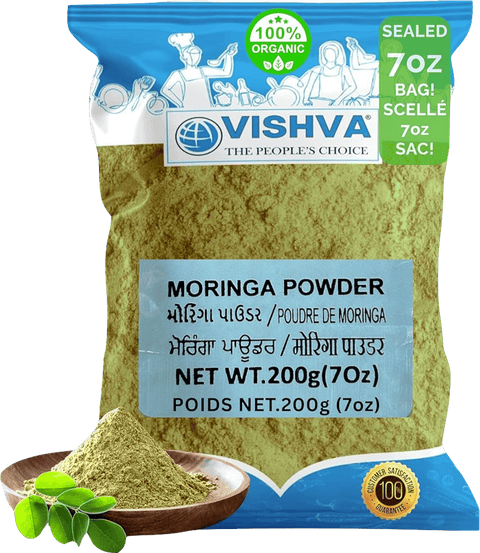 Vishva Moringa Powder is a finely ground powder made from dried moringa leaves. This versatile ingredient can be mixed into smoothies, beverages, soups, and culinary dishes to add a subtle earthy flavor. Sourced and processed with care, it brings authentic quality to your kitchen. Perfect for those exploring traditional ingredients and looking to expand their culinary repertoire with natural, plant-based options.
